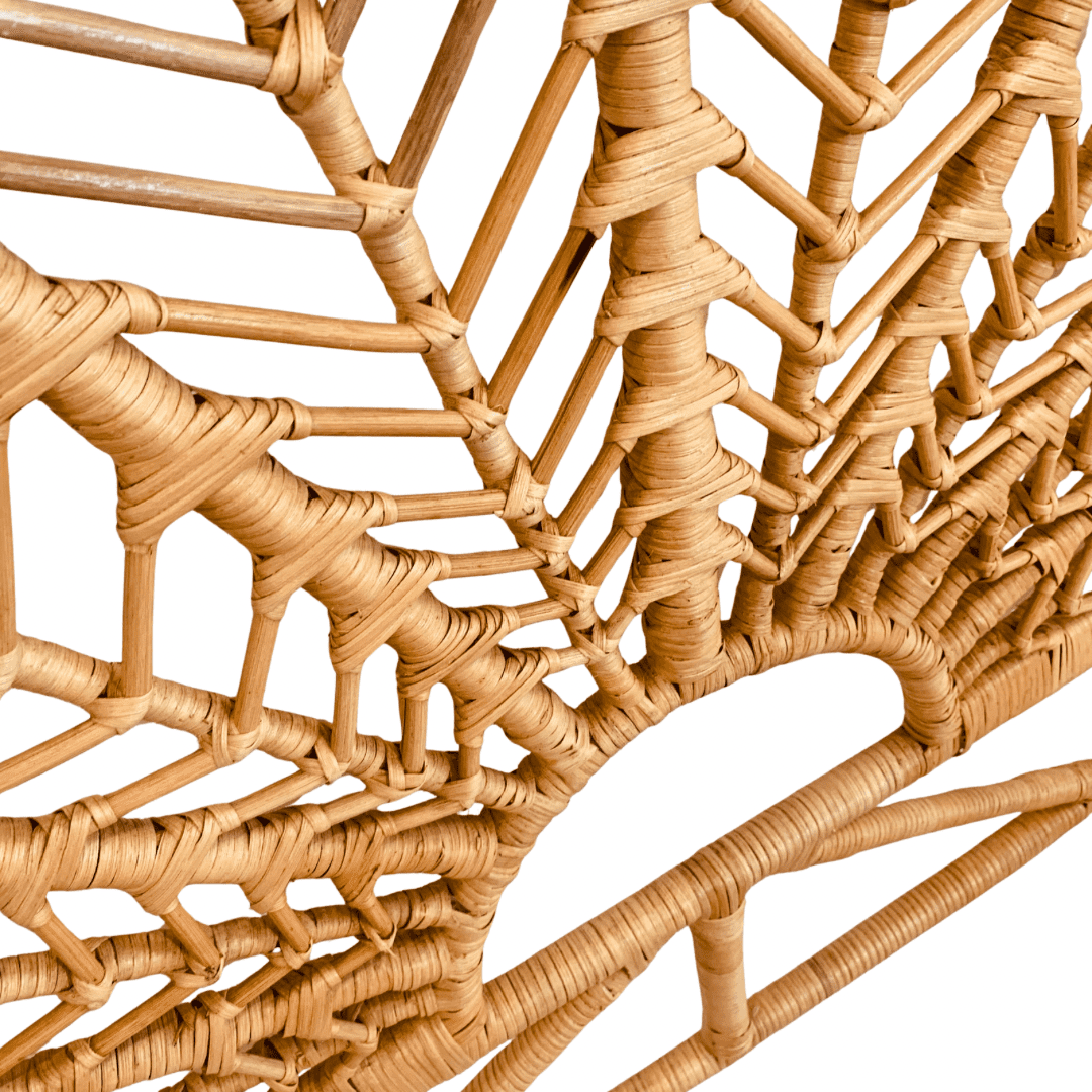 Where nature’s delicate forms meet enduring craftsmanship. This headboard is meticulously handwoven from resilient rattan and bamboo, capturing the gentle, organic flow of leaf petals in its intricate pattern. The design offers a subtle, botanical artistry that brings a serene and artistic focal point to your bedroom. Durable, resistant, and crafted by hand, it embodies a light, airy presence while providing the solid structure and timeless texture characteristic of our artisan collection.