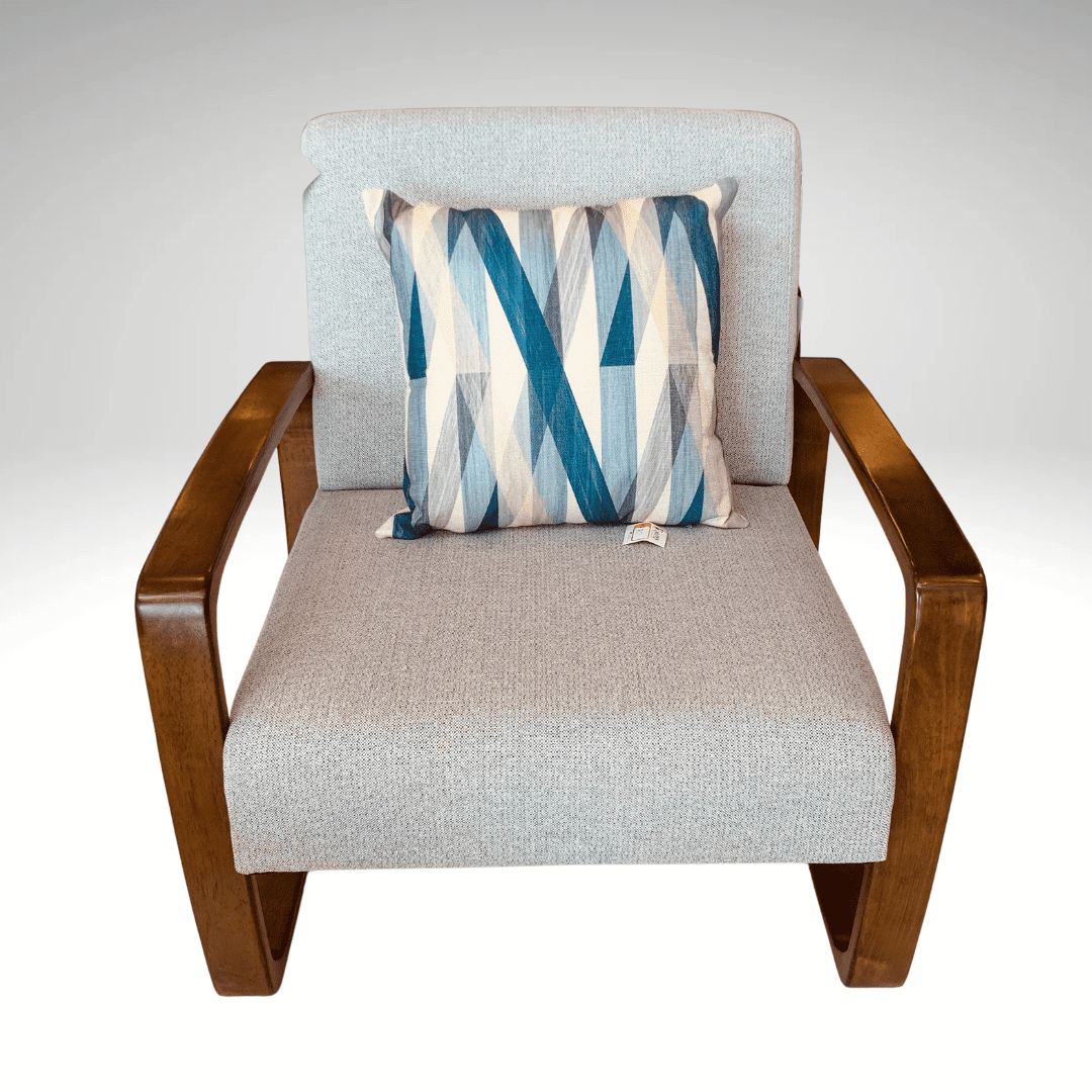Form meets fluid, natural comfort. The frame is its defining feature—sculpted from solid wood into soft, organic curves that flow seamlessly from armrest to leg, offering a unique and elegant silhouette. This artistry is paired with pure function: a wide, deep seat and tall backrest upholstered in a cool, stone-gray fabric that is both refreshing to the touch and engineered for durability. The result is a chair that provides enveloping comfort while serving as a sculptural centerpiece for your living room.