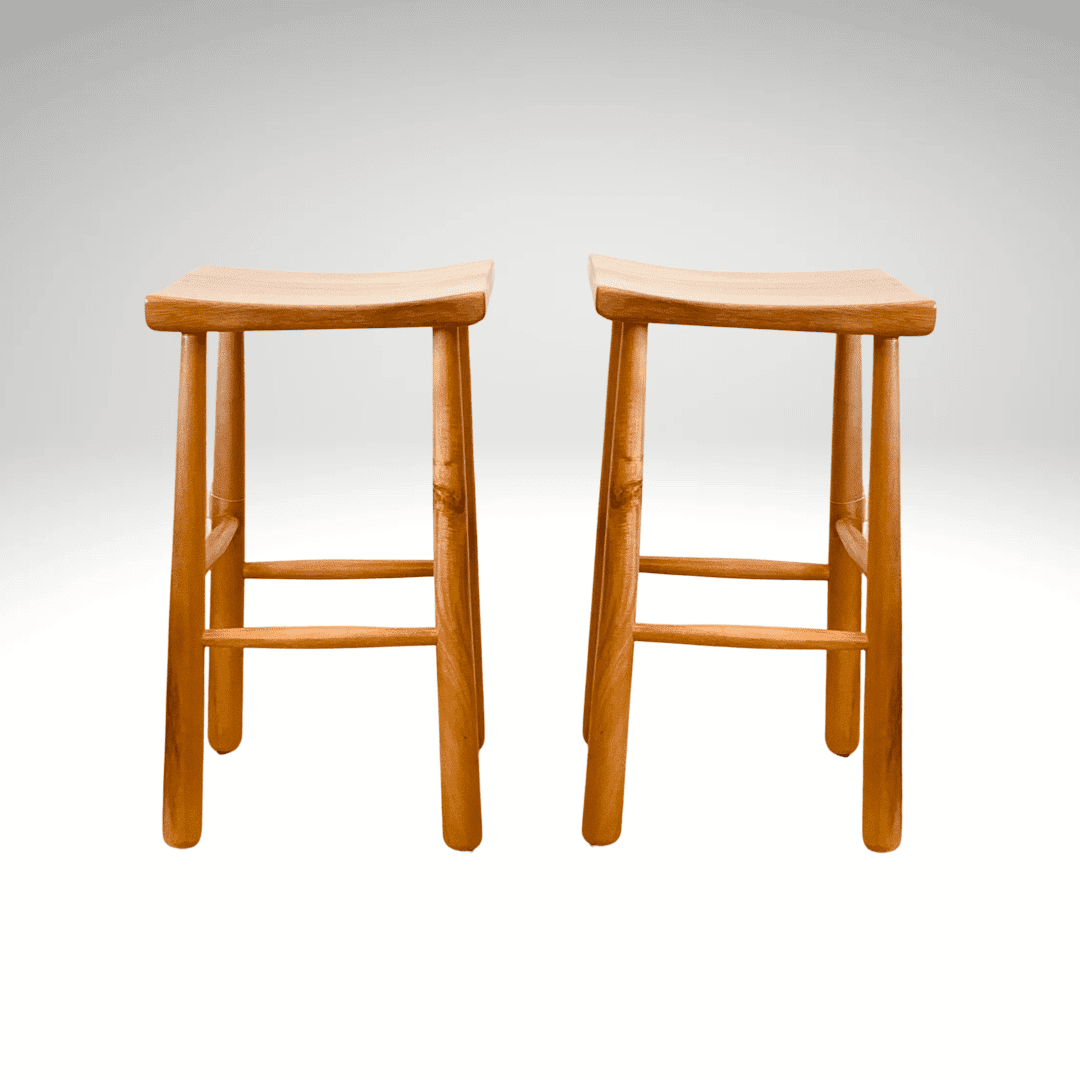 A solid wood stool with a comfort-shaped concave seat and a durable marine varnish finish. Built for stability and style at your kitchen island or outdoor bar.