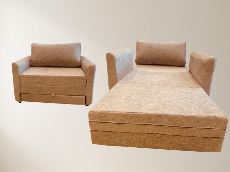 Compact comfort that transforms. This all-foam pull-out couch serves as a plush armchair by day and a single sleeper by night. Upholstered in soft, durable beige fabric, it’s the ideal space-saving solution for small apartments and guest rooms.