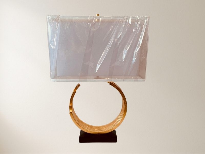 The elegant, gold-toned arch sweeping from the base, creating a stunning silhouette from every angle. This lamp is the perfect fusion of art and function, designed to elevate your space with its understated, celestial charm.
