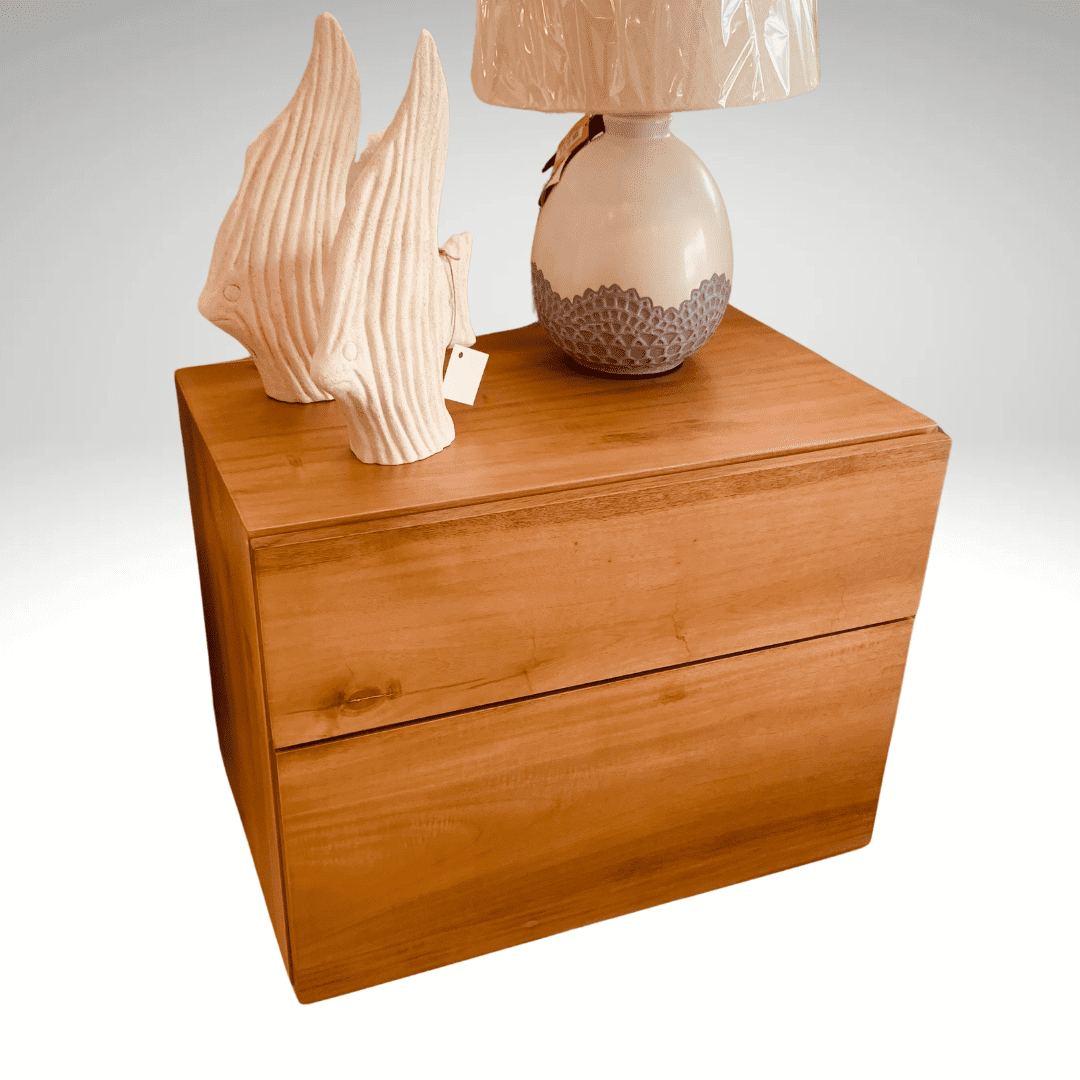 Crafted for the quiet moments. This night table combines clean, elegant lines with the timeless warmth of stained wood. It features two smooth-gliding drawers that offer discreet, practical storage for everything from books to bedtime essentials, keeping your sanctuary clutter-free. The rich wood grain is highlighted by a deep, durable stain, showcasing the natural beauty of the solid wood construction. With its perfect bedside proportions and thoughtful craftsmanship, itโs the foundation for a serene and stylish bedroom.